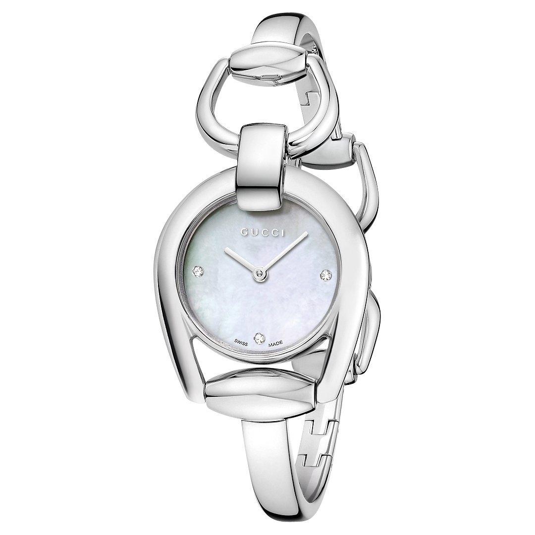 Gucci YA139506 Women s Horsebit Stainless Steel Bangle Strap Watch Silver White Very well made.
