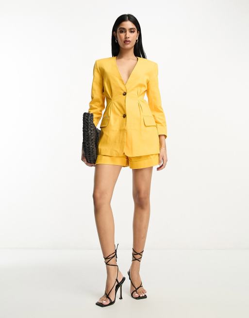 ASOS DESIGN collarless suit blazer with linen in citrus Very well made.