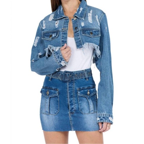 Women s Chic Cropped Distressed Denim Jacket American Bazi S Target Very well made.