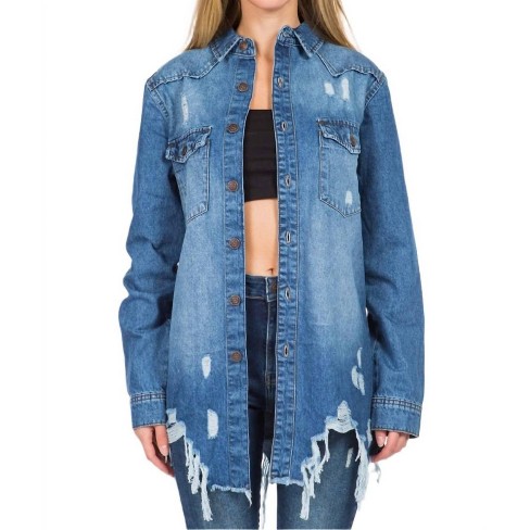 Women s Chic Distressed Denim Jacket American Bazi L Target Very well made.